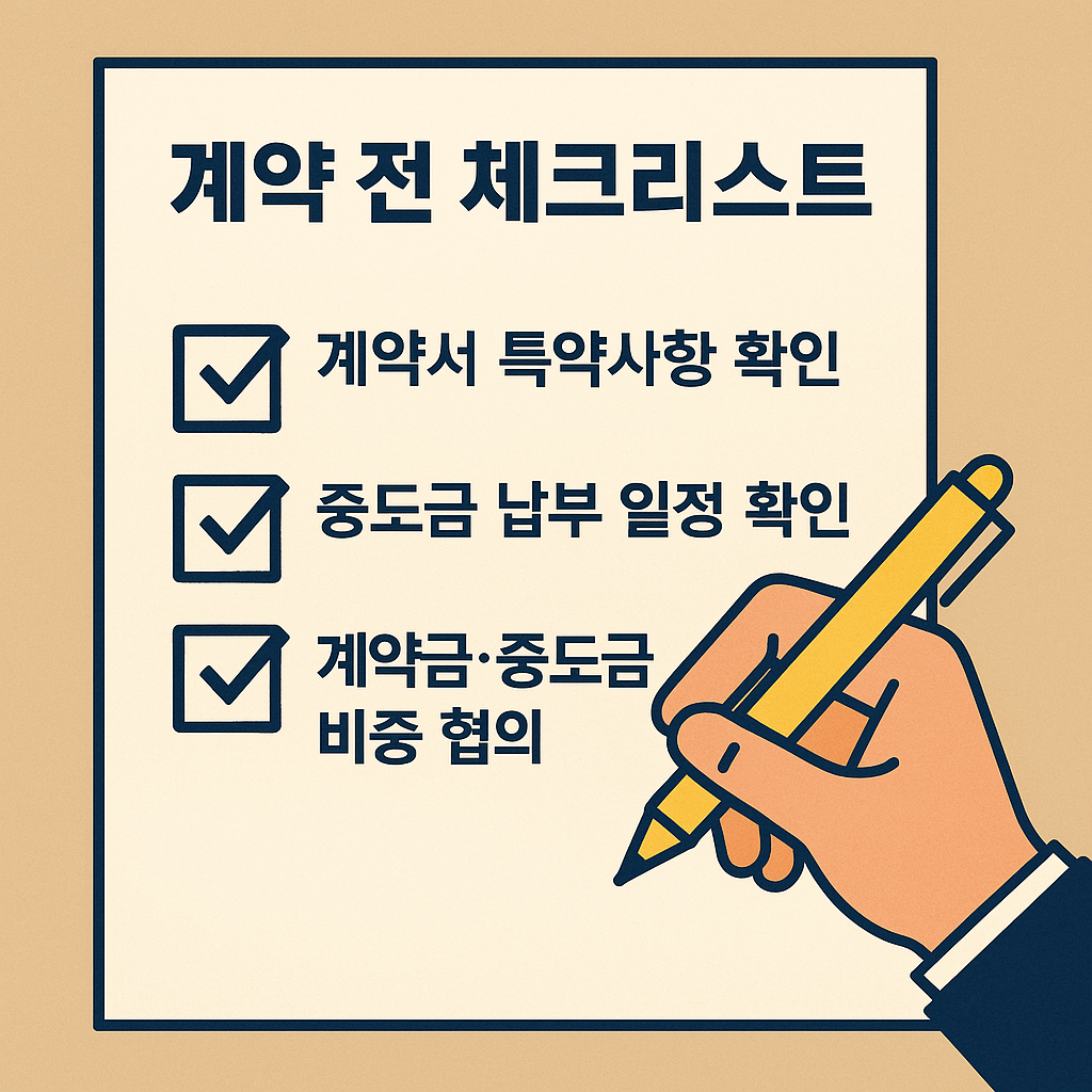 - 대출이 필요한 경우, 중도금 납부일과 대출 실행일이 겹치는지 확인해야 합니다. 이 간극이 문제를 만들 수 있습니다.